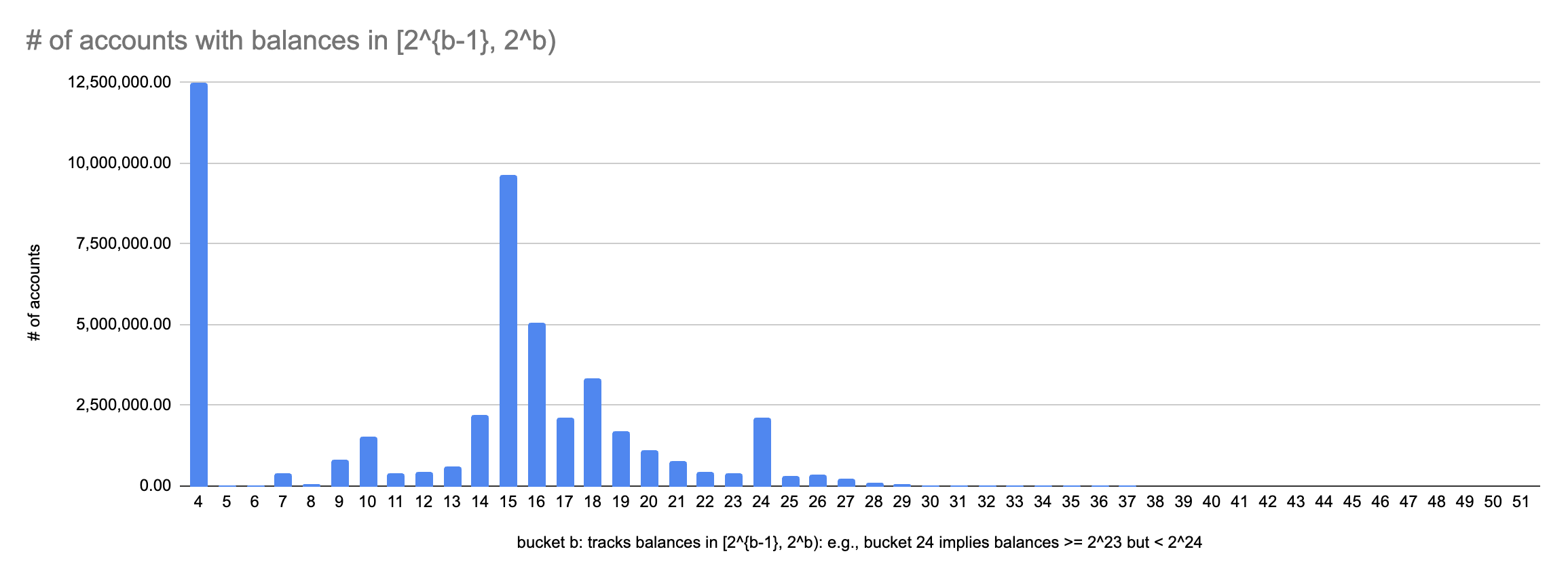 - In Aptos, balances are 128 bits $\Rightarrow \ell\cdot b = 128$
