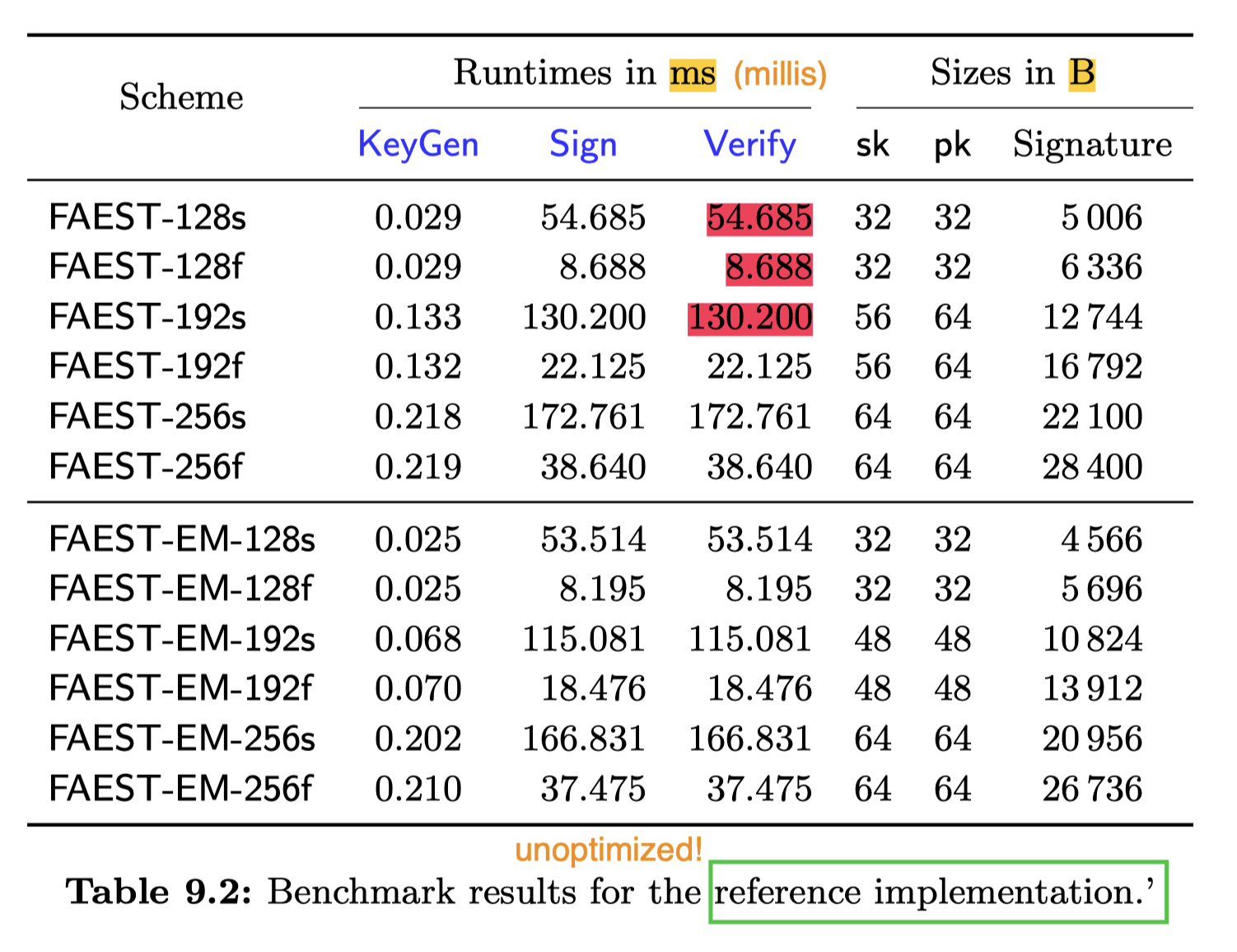 | SLH-DSA-SHAKE-128s | 1.06 s | 0.98 ms | 7,856 |