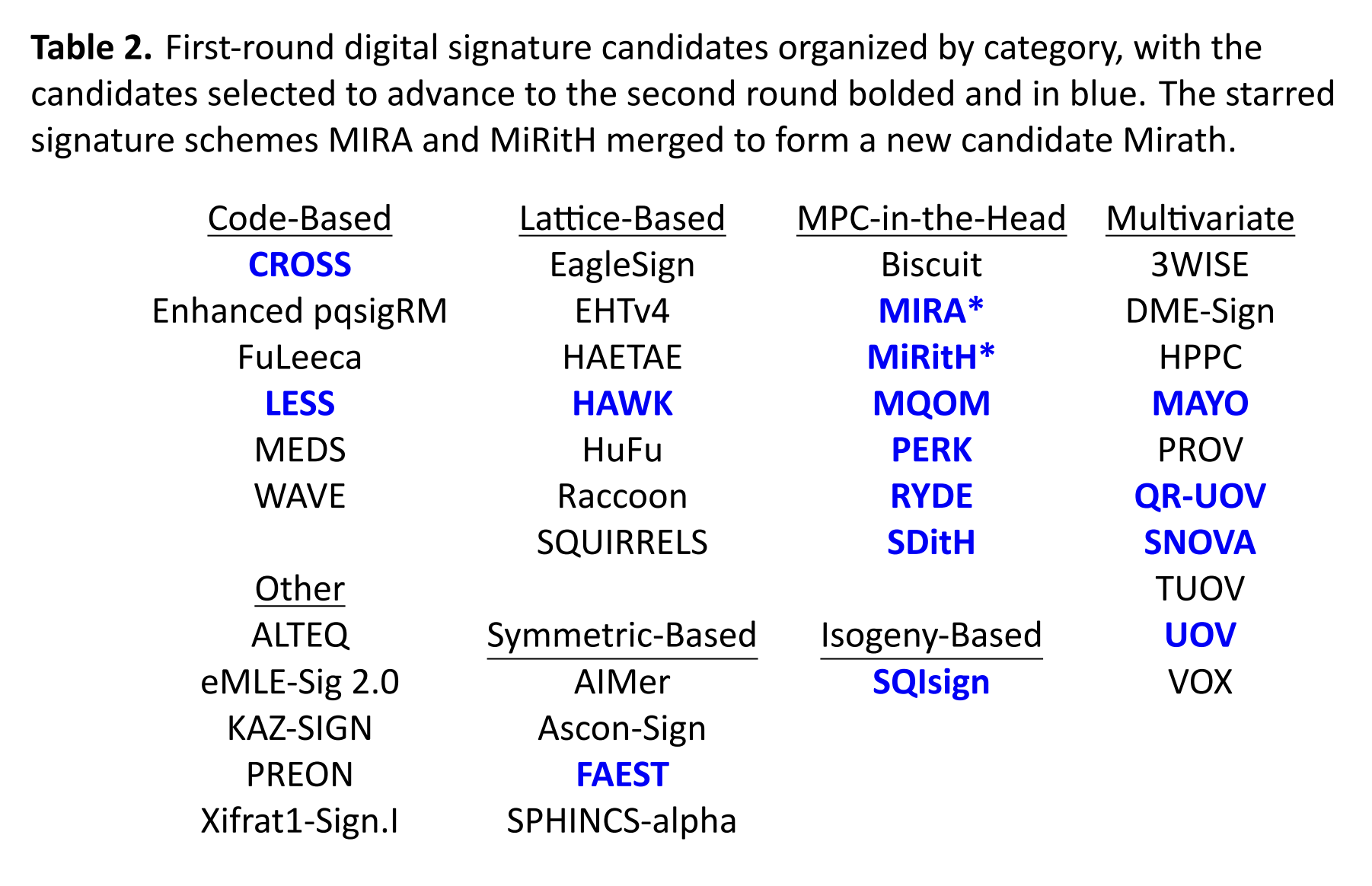 - Surveyed NIST’s Round 2 additonal candidates1