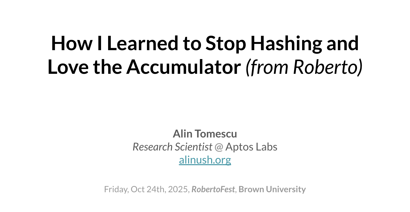 How I Learned to Stop Hashing and Love the Accumulator (from Roberto)